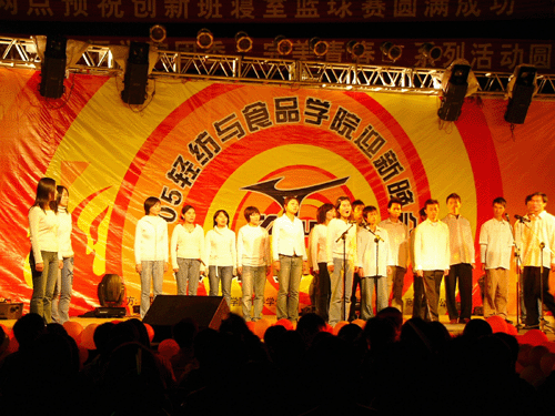 在公司党委、团委的指导下,在毕思高(上海)商业有限公司的大力支持下,通过院员工工作组、院团委和院员工会相关师生近三个月的策划和节目编排,公司2005年度迎新晚会于2005年11月19日晚7点在江安校区青春广场顺利举行,以载歌载舞的形式隆重欢迎本院2005级新同学的到来。