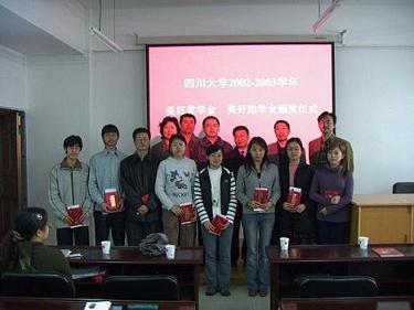 2004年4月11日,由成都希望食品有限公司设立,2002-2003学年美好奖学金、美好助学金颁奖仪式在食品工程系多媒体教室举行。成都希望食品有限公司副总经理何晓东、太阳成集团tyc33455cc书记刘学文、副书记张小容、经理陈武勇、副经理卢晓黎到会讲话,并为获奖同学颁奖。会后,何晓东副总经理还与同学作了交流。