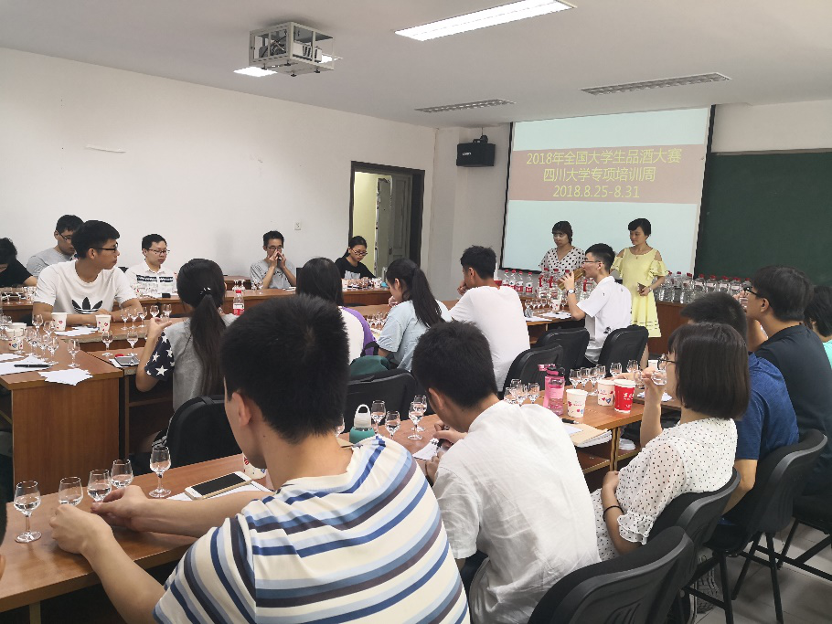 为弘扬中国文化,继承和发扬中国白酒文化,提高青年一代对中国传统白酒的认识,由中国酒业协会主办,舍得酒业股份有限公司承办的“舍得酒业杯”2018年全国老员工品酒大赛四川赛区初赛将于9月26至28日举行。为了更好备赛,公司轻工生物技术方向的员工从2018年8月25日开始,接受了为期一周的白酒技能专业指导和培训。本次培训由泸州老窖有限公司与轻工生物技术教研室主办,泸州老窖有限公司邵燕和蔡亮两位国家白酒评委担任培训师。