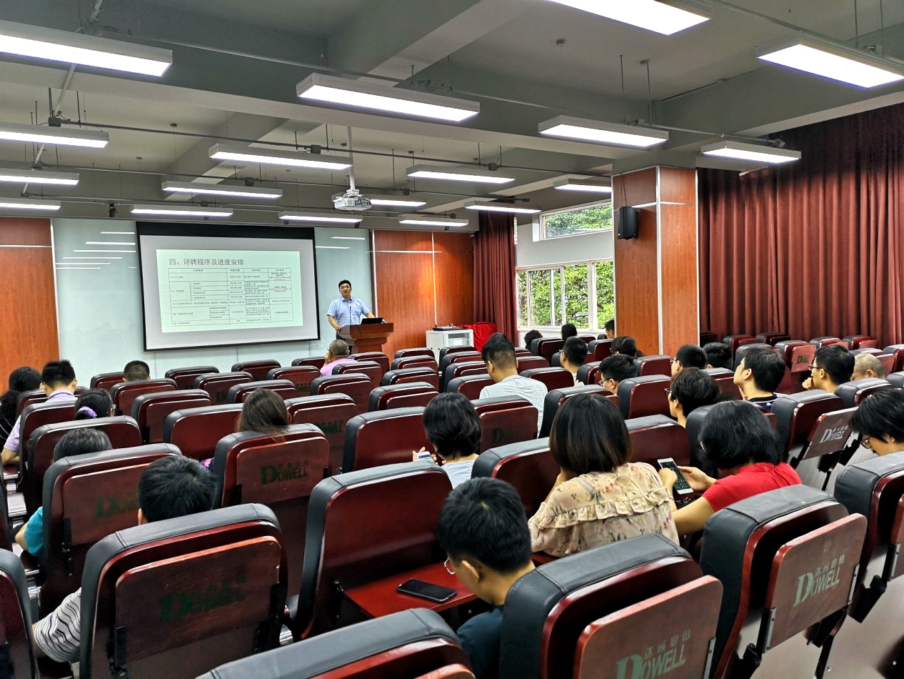 2018年9月5日下午,公司在皮革楼报告厅举行了本年度专业技术职务评聘工作宣讲会,宣讲会由刘晓虎书记主讲,关心职称晋升的教师、公司评聘小组和推荐小组成员、教学秘书、科研秘书、研究生教务员等参加了会议。