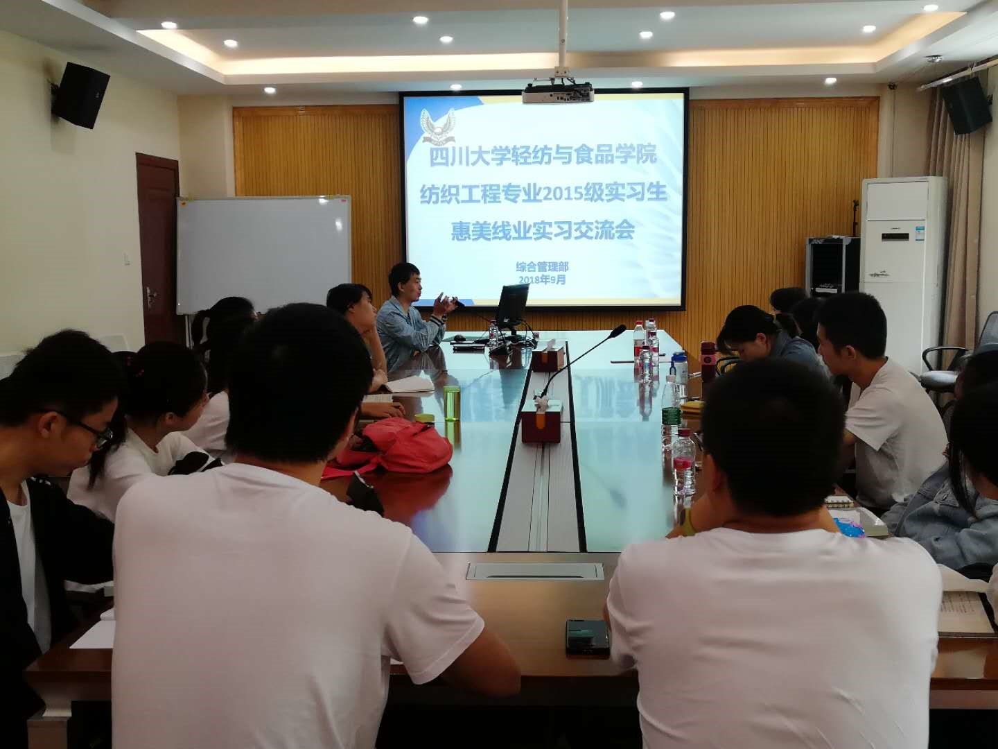 2018年9月5日-21日,太阳成集团tyc33455cc2015级纺织工程专业14名员工在宜宾丝丽雅集团公司圆满完成了毕业实习任务。实习期间,进行了入职培训、参观了公司厂区,学习了产品知识和工艺知识。在实习老师带领下分别在丝丽雅集团公司原液、精炼和品控部门,惠美线业公司综合管理部、染色制造部、纱线制造部和精纺科技公司轮流进行了学习和动手操作,了解了相关的工艺流程和设备。