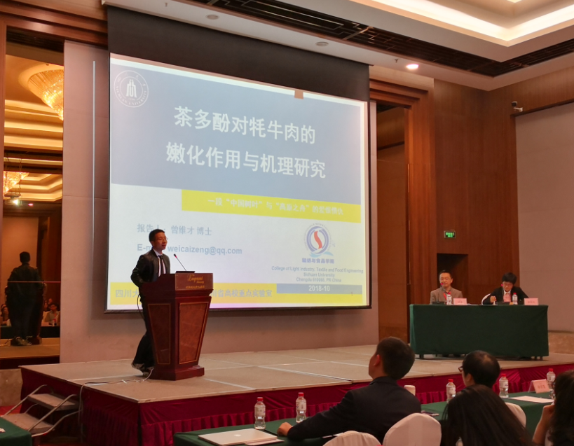 2018年10月11日至13日,由中国畜产品加工研究会主办、沈阳农业大学食品公司承办的第十六届中国肉类大会在沈阳召开。中国畜产品加工研究会青年委员、公司食品工程系教师曾维才博士应邀出席大会并于大会青年论坛做主题报告。本次大会探讨了我国肉品行业发展所面临的问题、机遇和挑战,为决策政府部门提供新的参考信息,展示了肉类科学研究的新成果、新技术、新装备,为肉类生产企业和研发人员提供新商机、新理念。同时,国内外畜产品加工领域的480余位学者参加会议,加强了公司食品学科与国内外兄弟院校之间的交流与联系。