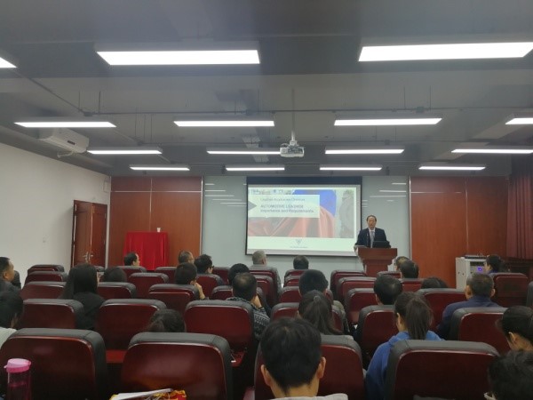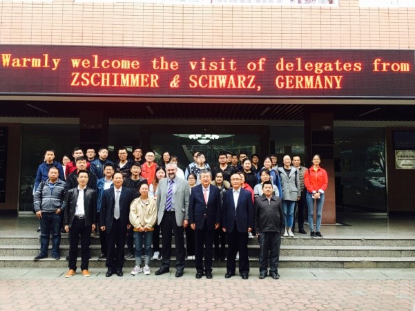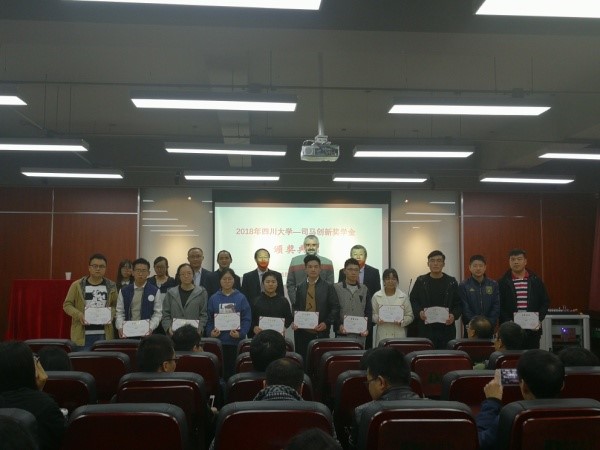 2018年11月6日,第11届太阳成集团tyc33455cc-司马创新奖学金颁奖典礼在太阳成集团tyc33455cc皮革楼报告厅隆重举行。德国司马化学公司研发部经理Francke博士、司马化学公司首席代表/皮革部中国区张建华总经理、皮革部技术代表滑洪臣工程师专程到川大参加颁奖典礼。