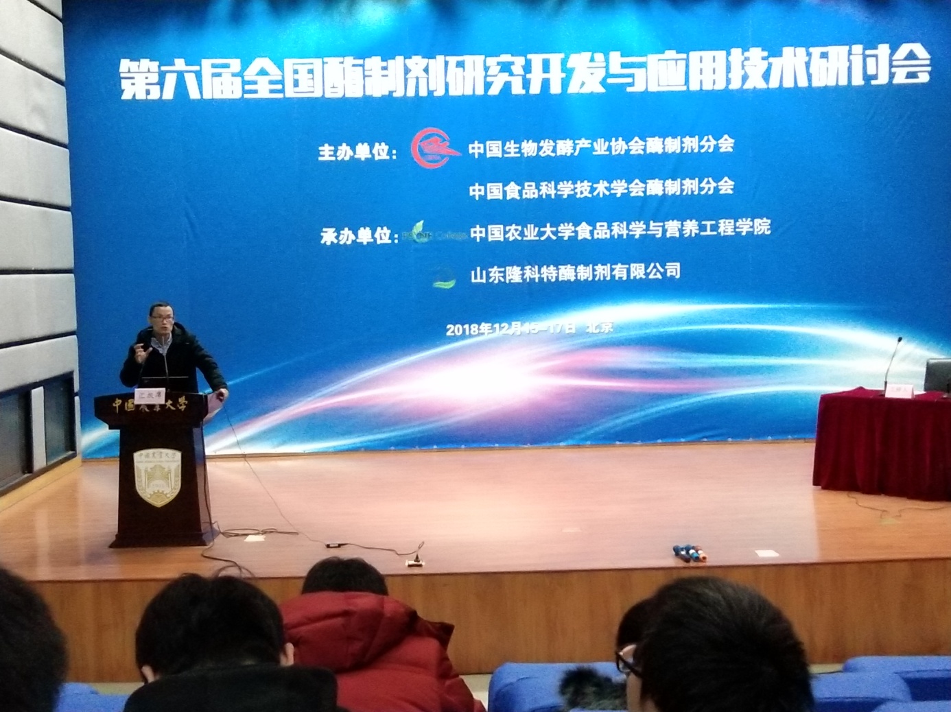 本次会议由中国生物发酵产业协会酶制剂分会、中国食品科学技术学会酶制剂分会联合主办,由中国农业大学食品科学与营养工程公司、山东隆科特酶制剂有限公司联合承办,来自国内知名高校、科研院所和国家食品安全评估中心的200余名专家学者参加了会议。会议期间,彭必雨教授团队与酶制剂领域的专家和企业就如何合作研发皮革酶制剂进行了较深入的研讨,并达成了一些共识。
