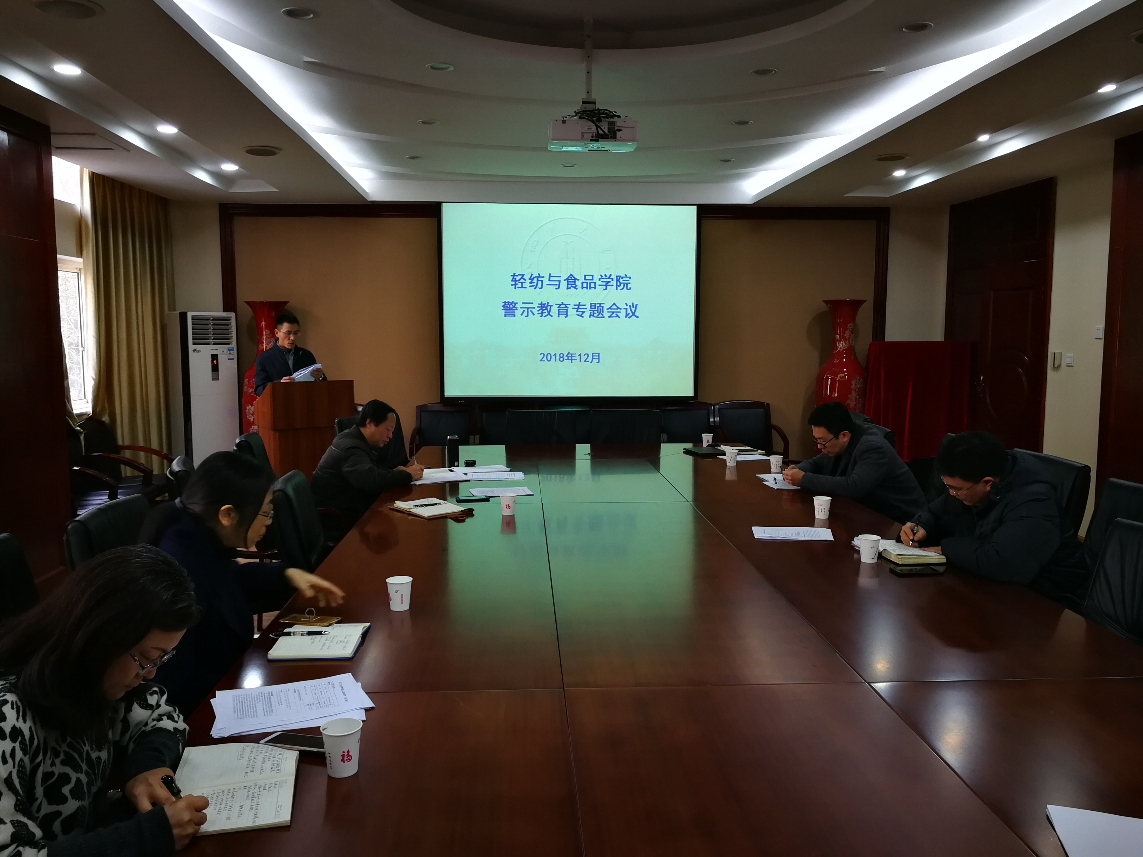 轻纺与食品公司党风廉政教育专项警示教育会议于2018年12月17日上午9:00在皮革楼209会议室举行。参加本次会议的有公司中层领导班子、党委委员、纪委委员、教职工党支部书记以及系所负责人。
