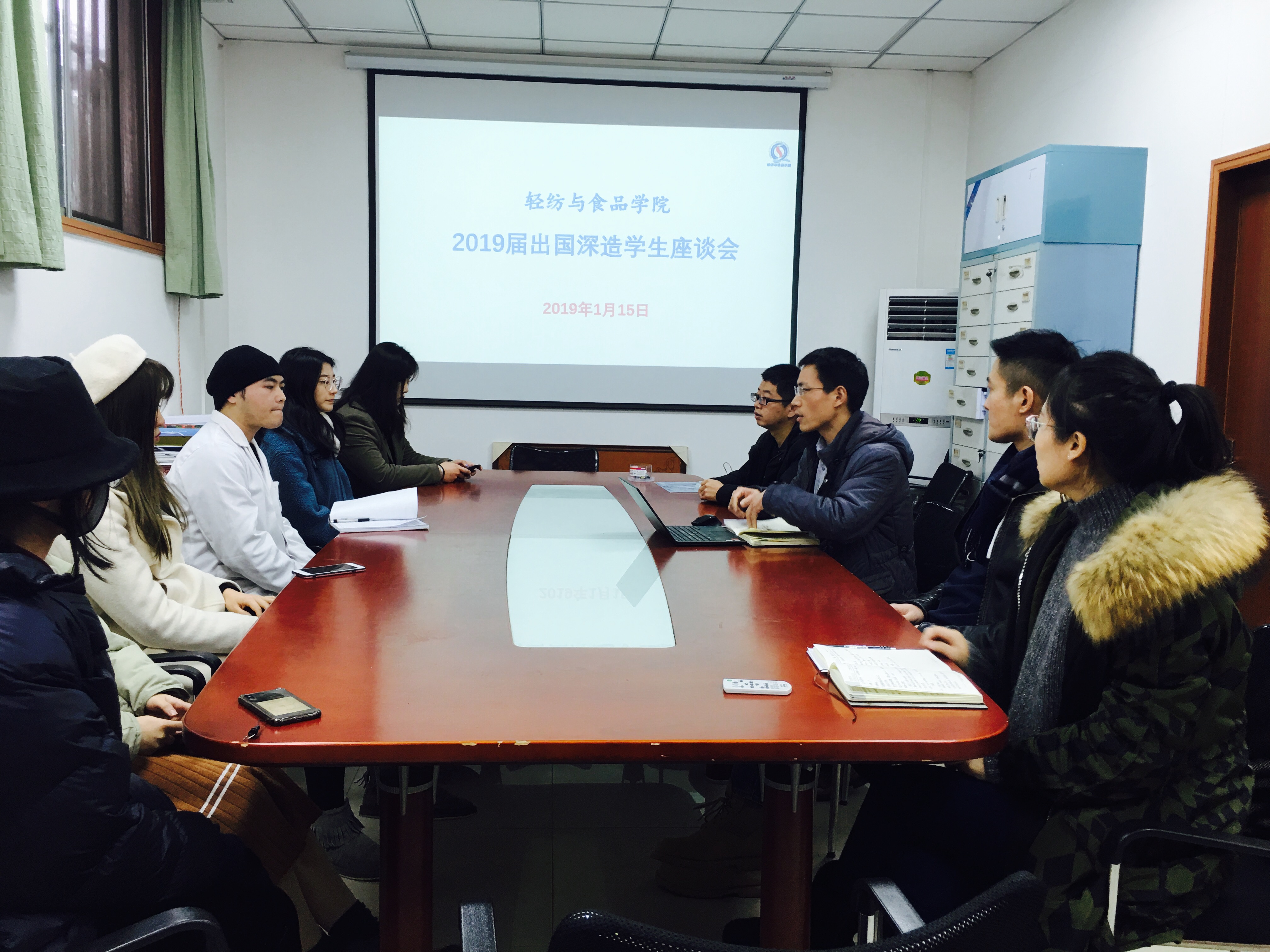 为提高公司本科生毕业后的出国出境深造机会,增强拟出国出境员工的经验交流与分享,公司于2019年1月15日下午15:00在纺工附楼201会议室召开2015级本科拟出国出境员工交流会。公司党委副书记冯国涛老师、2015级辅导员贺婷老师、有着国外学习生活经历的林绍建特聘副研究员、王巍老师以及2015级拟出国出境深造的同学代表参加了此次交流会。