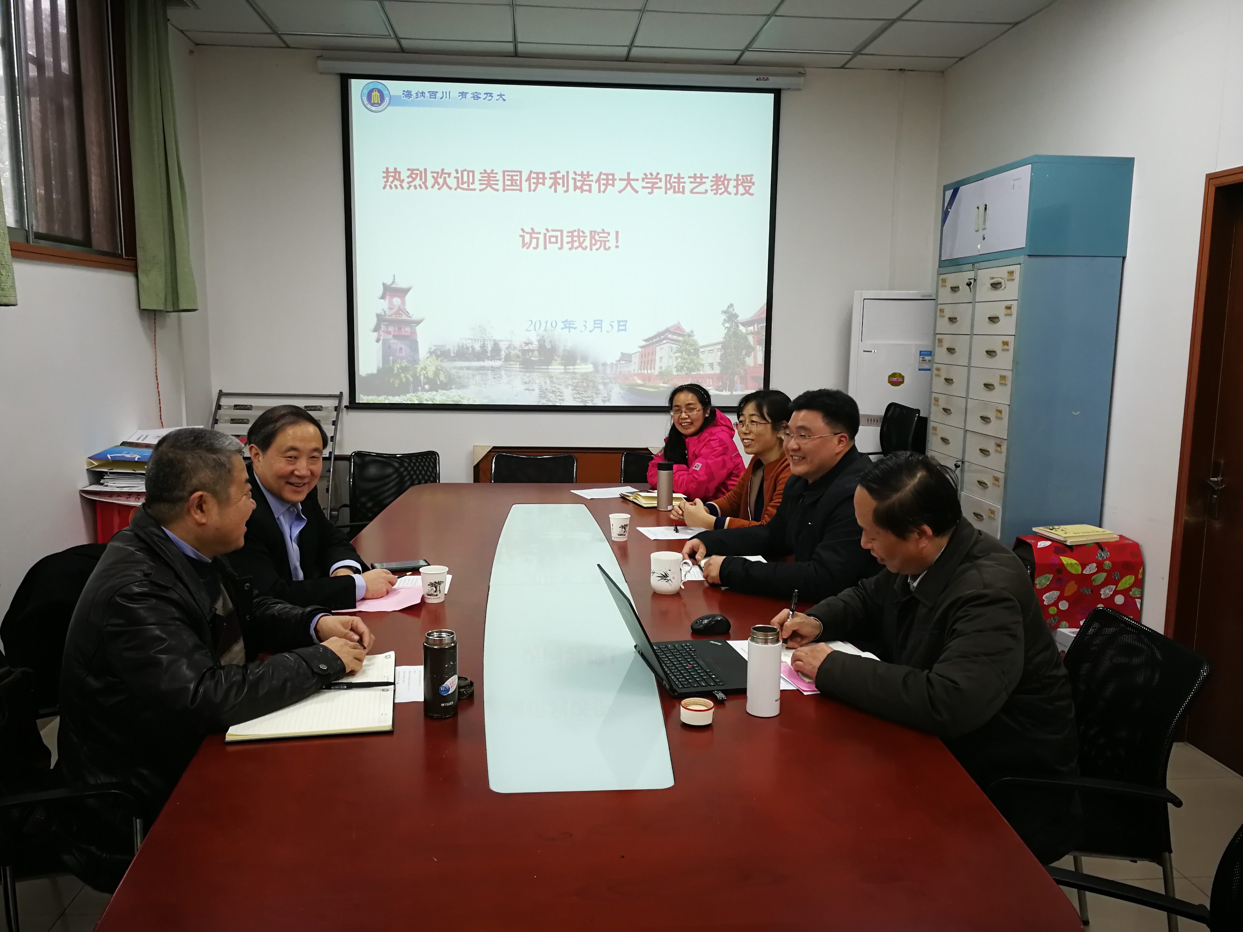 2019年3月5日下午,美国伊利诺伊大学陆艺教授来公司访问交流,刘晓虎书记、何有节经理、但卫华教授、系主任林炜教授、吕远平教授和郭荣辉副教授在纺工附楼201会议室参加了此次交流会谈。