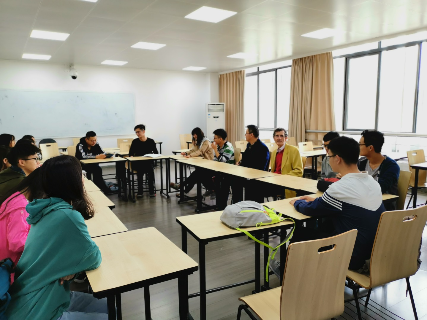 2019年4月14日下午16:00-18:00点,正值春光灿烂好时光,太阳成集团tyc33455cc高端外籍教师、公司教授Didier Astruc院士作为重要嘉宾出席了2017级轻化工程三班的班会活动,与2017级轻化三班的同学们一起深入交流有关于化学、科研、个人价值选择等老员工关心的问题。该班班主任、生物质与皮革工程系辜海彬副教授组织、参加了本次班会活动。
