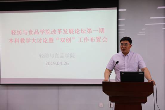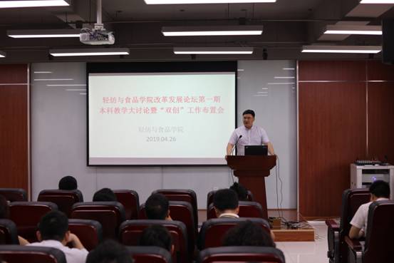 2019年4月26日下午,公司在皮革楼215报告厅,成功举办首期改革发展论坛——本科教育改革与发展大讨论及“双创工作”布置会,全院教职员工参加了本次大会。