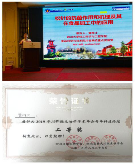 2019年8月26-28日,由四川省微生物学会和湖北省暨武汉微生物学会主办的“2019年川鄂微生物学学术年会”在四川省西昌市隆重开幕,公司食品工程系曾维才副教授应邀出席大会,并积极参与了微生物资源发掘与利用、微生物与环境保护、微生物与人口健康、微生物与食品安全等方面的科技交流,共同探讨微生物学领域最新科研成果和技术。会议期间,曾维才老师在大会青年科技论坛做了主题为“松针的抗菌作用和机理及其在食品加工中的应用”的科技报告,现场反响热烈,获得了大会组委会授予的“2019年川鄂微生物学学术年会青年科技论坛二等奖”,受到了与会专家的一致好评,积极地扩大了川大食品学科的影响力。