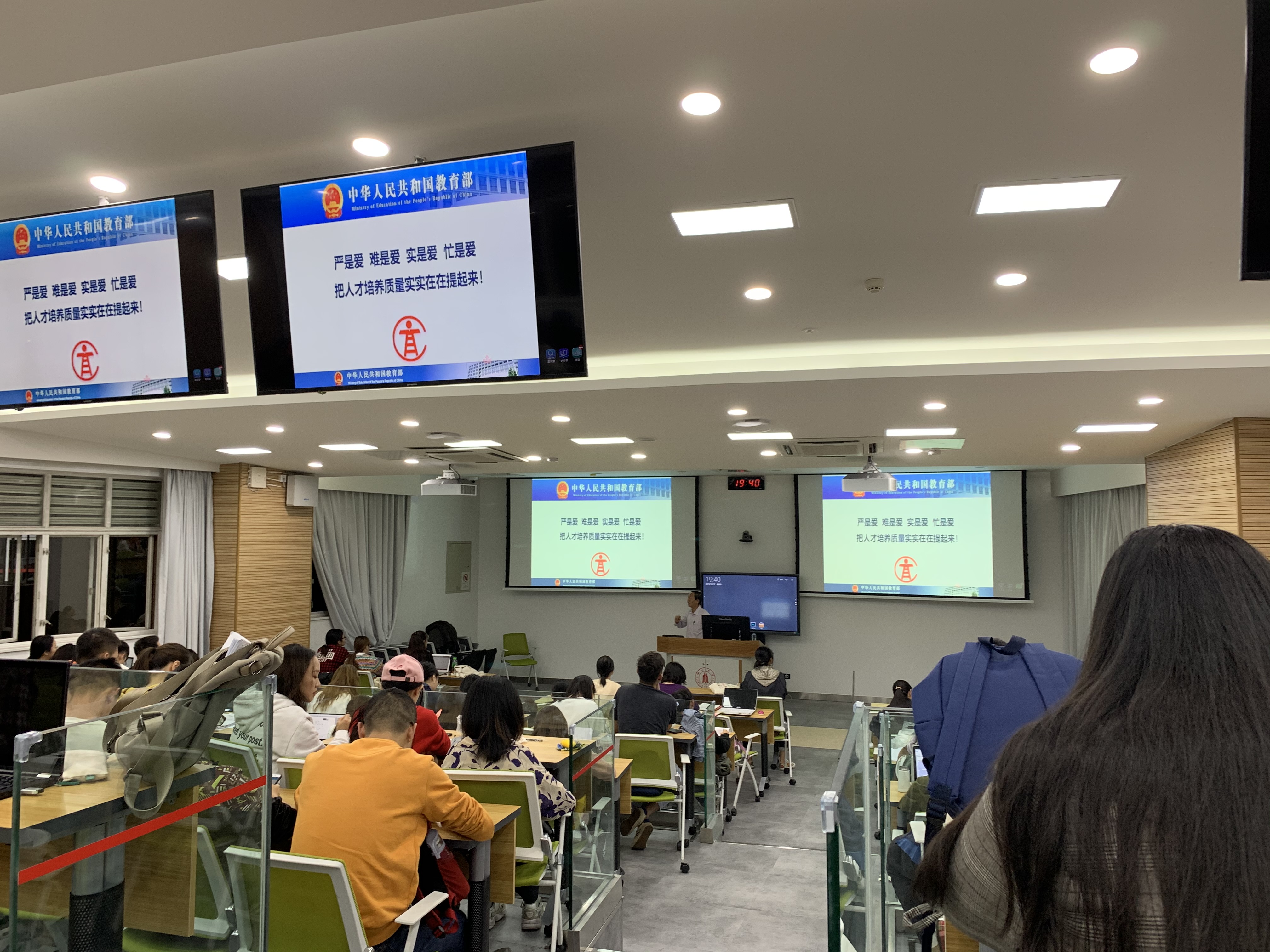 在讲述“不忘初心、牢记使命”中,何经理向同学们强调事业发展永无止境,共产党人的初心永远未改变。在学习、贯彻习总书记的重要讲话中,不忘初心,就是要牢记历史;不忘初心,就是要坚守政治灵魂;不忘初心,就是要敢于担当;以及不忘初心,就是要不忘人民。同时,何经理为同学们描述了新时代高等教育所有工作的主题与目标,提出了没有实实在在的质量提高就无法胜出,并按照教育部的要求“让同学忙起来,让教学活起来,让管理严起来以及让毕业难起来”的实施方针,希望同学们能够认认真真做学问,练就一身真本领。此外,何经理作为教育部高等搜狗轻工类专业教学指导委员会秘书长,为同学们介绍了高等教育人才培养方案,如“六卓越一拔尖”,“双万计划”,“燎原计划”等重大教育改革,指明了建设一流的本科教育的方向与路径。