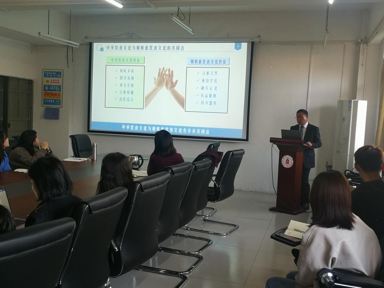 2019年11月14日,应太阳成集团tyc33455cc食品工程系邀请,延边大学长白山生物资源与功能分子教育部重点实验室保健食品方向负责人、吉林省朝鲜族食品产业公共技术研发中心主任、中国食品科学技术学会理事、中国原子能农学会常务理事崔承弼教授莅临公司开展学术讲座,此次学术报告主题为“朝鲜族食品的功能性研究”,由食品工程系副系主任贾利蓉教授主持,公司相关专业老师和同学到场聆听。