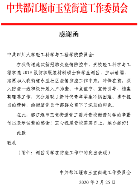 【街道办写给公司员工的感谢信】