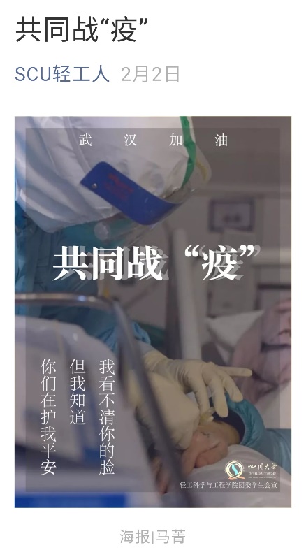 2018级服装与服饰专业本科生—张世攀:疫情期间作为四川省资阳市安岳县人民医院志愿者,在医院负责进出口的体温检测工作,之后前往高速公路发热观测点测体温。不管是在电视画面上,还是身处医院做志愿者目睹医护工作者为了生命的重生而坚守,亦或是高速公路上为素不相识人测体温。我想,疫情当下,总需要人,为万家灯火守护,。。。。。。我愿意是那个人。