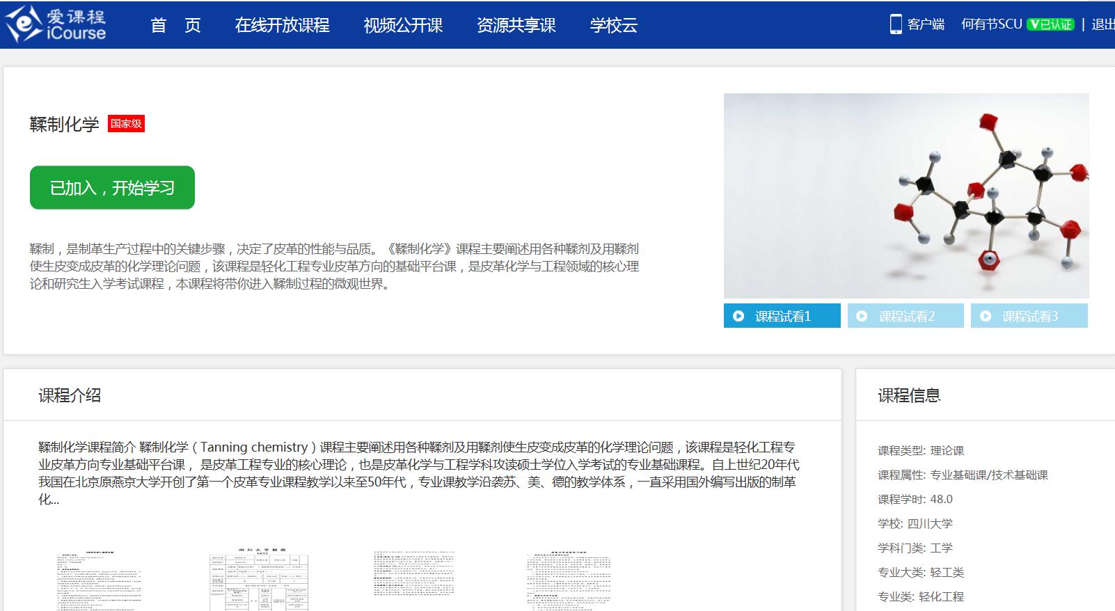 公司国家级精品资源共享课程和慕课《鞣制化学》在推荐之列