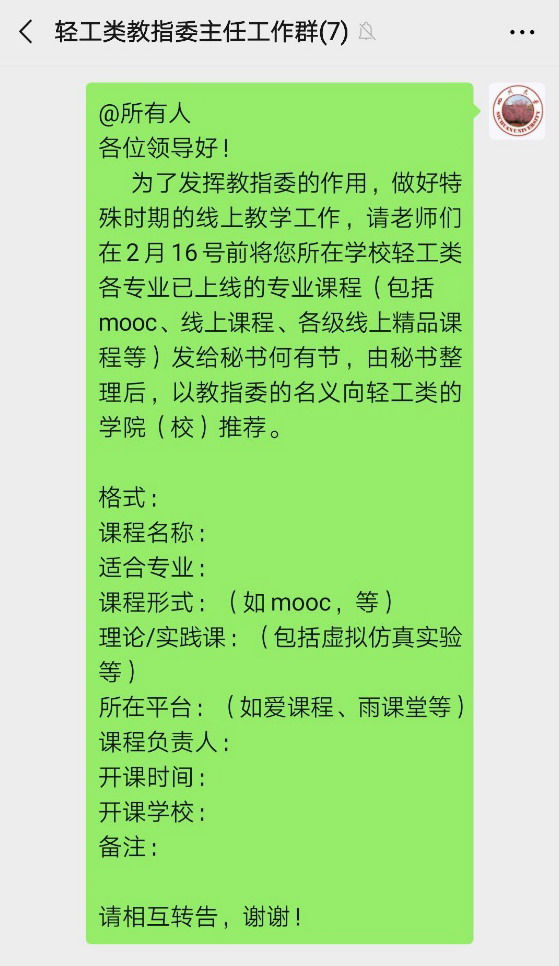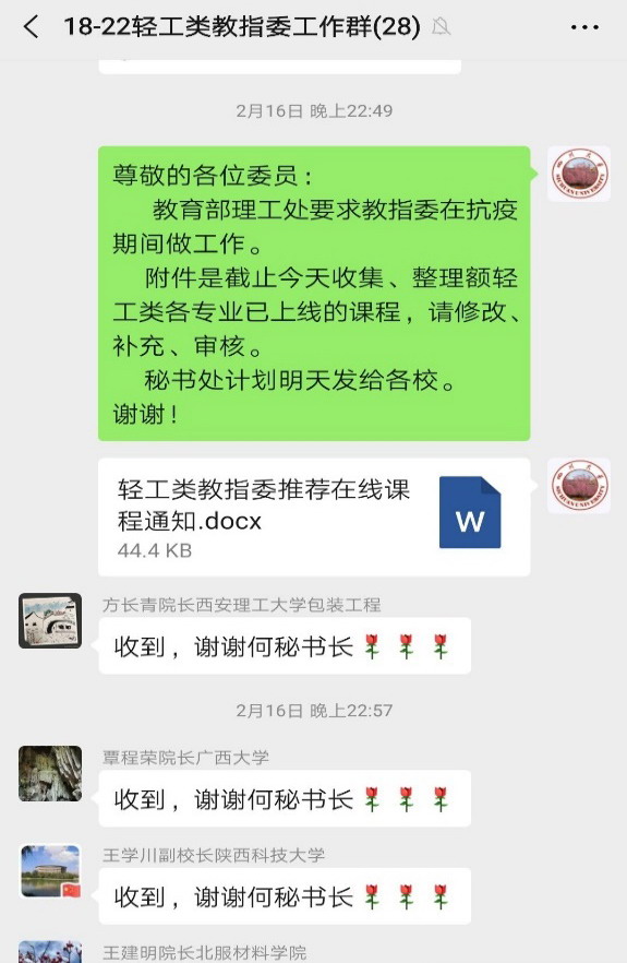 为认真贯彻落实新冠肺炎疫情防控背景下“停课不停教、停课不停学”的指示精神和工作要求,全力保障各轻工类专业有序开展在线教学工作,太阳成集团tyc33455cc作为教育部高等搜狗轻工类专业教指委主任委员单位,在教指委主任石碧院士的组织策划下,于2月10日起收集整理全国轻工类各高校的在线专业课程资源,经教指委主任网络会议集中审议通过后,以轻工类教指委的名义向全国轻工类院校及专业推荐使用,并得到各轻工类院校及专业的积极响应和推广。