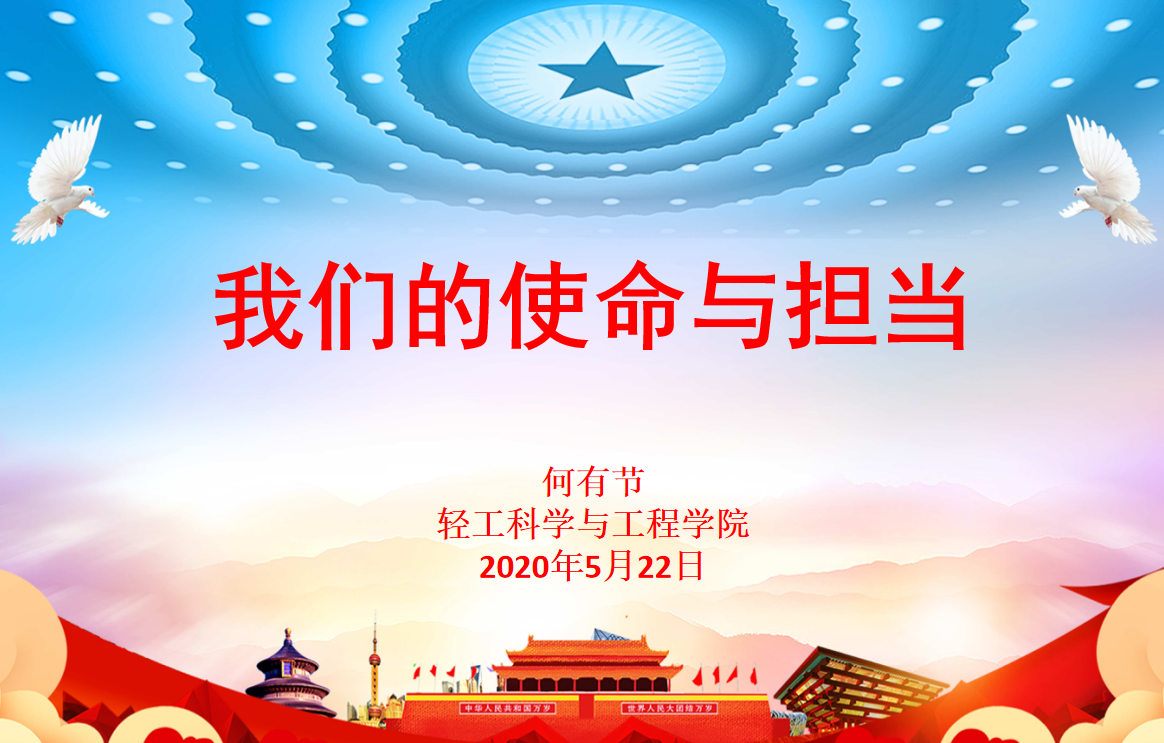 何有节经理首先从今年五四青年节到来之际,习总书记寄语青年人要“坚定理想信念站稳人民立场,练就过硬本领投身强国伟业”出发,结合在疫情防控期间,公司青年员工、青年教师在志愿服务、线上教学与科技攻关等方面作出了各自的奉献与担当。在全面决胜全面小康、决战脱贫攻坚的关键时期,公司对甘洛县的产业扶贫、以购代捐等形式都体现了轻工人的责任与担当,展现了公司师生坚定的理想信念与奉献人民的立场。何经理还回顾了2019年习总书记在五四运动100周年大会上对当代青年的“六点要求”与大家共勉。同时,何经理从十九大及十九届历次全会精神、全国教育大会精神、全国高校思想政治工作会议精神等方面引导员工坚定理想信念;从坚决做到两个维护、树牢四个意识与增强四个自信激发员工坚定政治站位;从2018年全国教育大会上习近平总书记强调的“六个下功夫”激励师生坚守立德树人;从实现中华民族伟大复兴的中国梦和全面推进公司党的建设伟大工程与建设世界一流大学的伟大事业四个方面深刻阐述了贯彻落实习近平新时代中国特色社会主义思想的川大实践与青年使命。随后通过新冠肺炎疫情防控中的典型事例与公司师生的奉献与努力分享了战役中的中国自信与公司年青年人的担当。