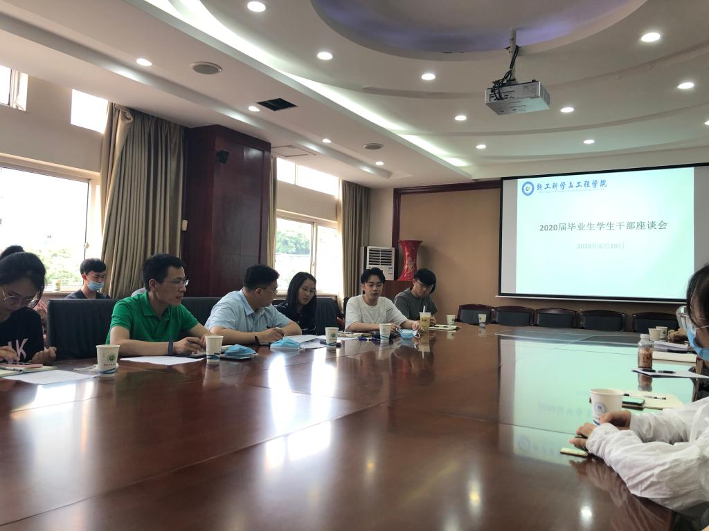 同时,2020年6月9日下午在皮革楼203举行了2020届结业生座谈会。公司党委副书记冯国涛老师、副经理彭必雨教授参加了此次座谈会。两位领导认真听取了在座同学的自我学习情况介绍及后期规划,对同学们在四年中的出现的小波折给予学习指导,并鼓励同学们要加强反思,总结经验教训,在人生的长跑中不再掉队。