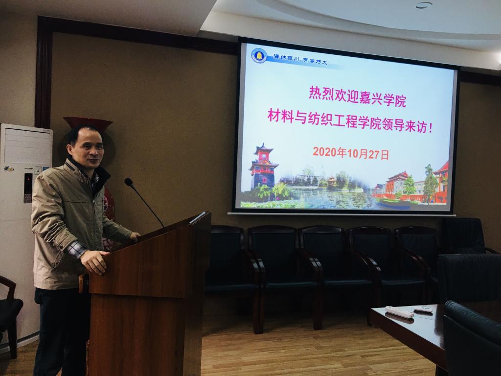 何有节经理代表公司党政对嘉兴公司材料与纺织工程公司一行到访表示热烈欢迎,并就公司现有组织架构、专业和团队建设、团队队伍、工程认证以及学科评估等方面情况进行介绍。