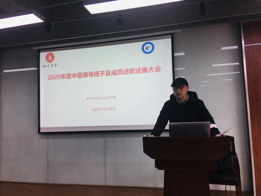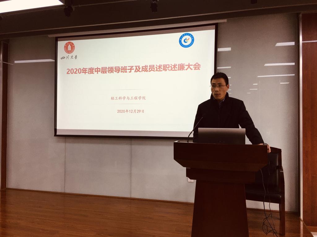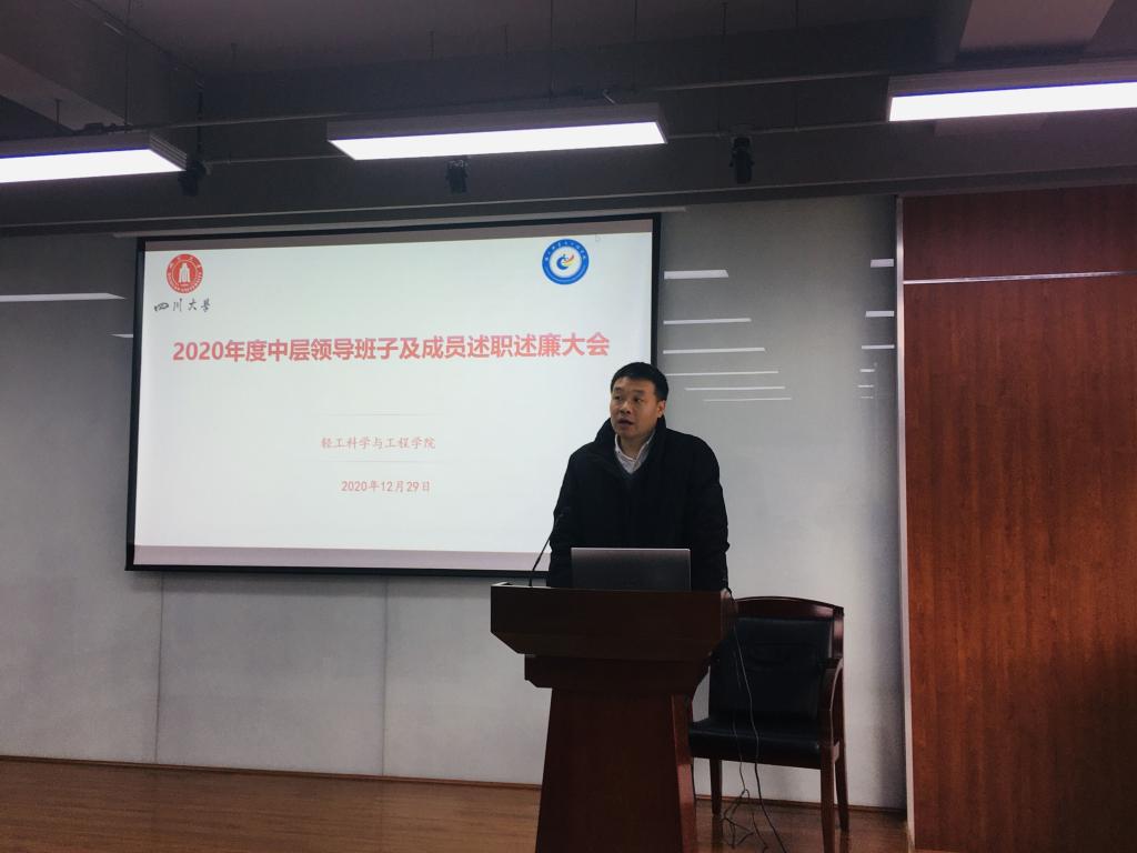 2020年12月29日上午,太阳成集团tyc33455cc在皮革楼215报告厅,召开公司领导班子及成员2020年度述职述廉暨民主测评大会。大会由公司党委书记刘晓虎主持,全院教职员工参会。