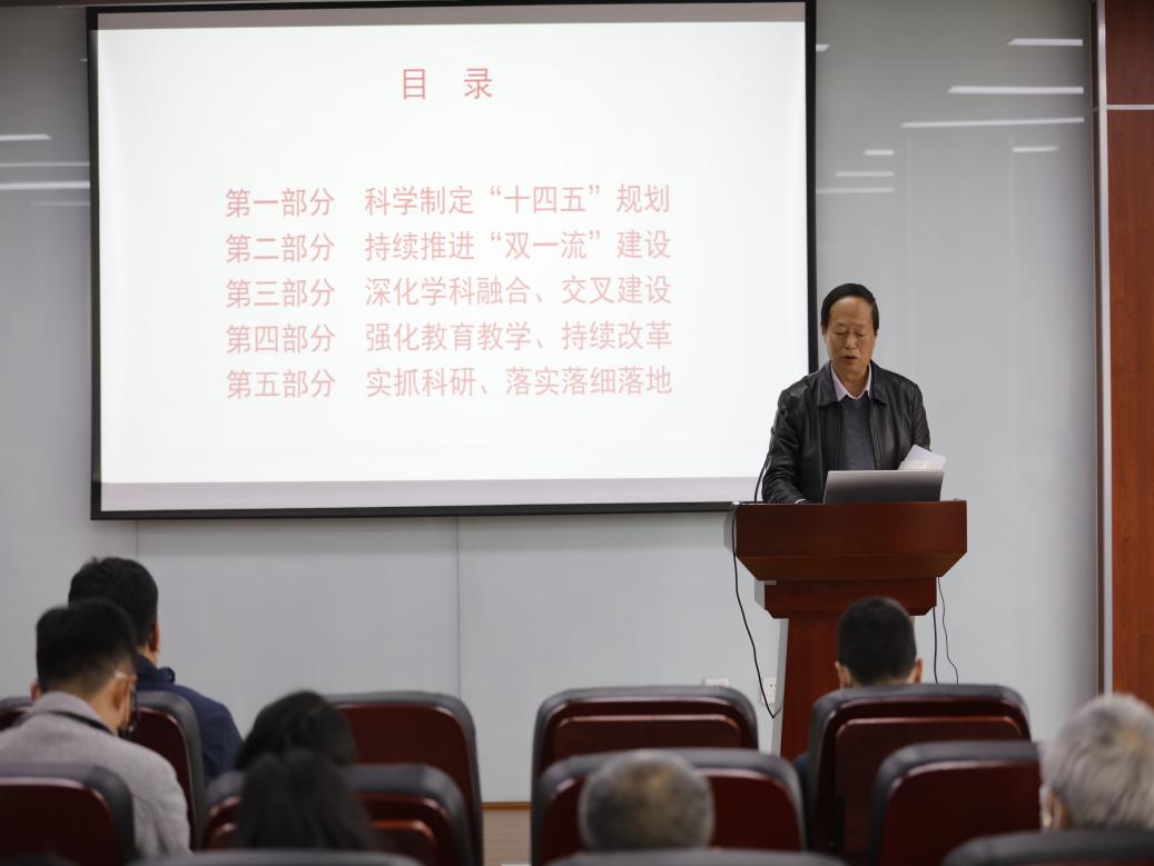 何有节经理从校院“十四五”规划制定、“双一流”建设发展、“学科融合交叉”、“公司产品改革”、“科学研究发展”五大方面就2021年度重点工作进行介绍。