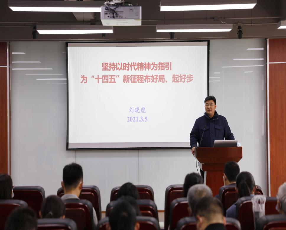 刘晓虎书记以“十九届五中全会”、“全国抗击新冠肺炎疫情表彰大会”、“全国脱贫攻坚总结表彰大会”三场重要会议精神启示作为开场,提振全体教职工干事创业的劲头和全力以赴投入新学期的新状态。向全体与会人员传达了王建国书记和李言荣董事长在2021年度工作布置会和第四届教代会暨第三届工代会第五次会议上的讲话精神。带领全体教职工回顾总结了公司2020年度工作开展情况,就工作开展中出现的问题进行深度剖析,并从三个方面对本年度重点工作进行安排和部署,提出2021年度工作思路及重点举措。一是继续做好疫情防控,守护师生安全。二是继续发挥党建对公司各项事业发展的引领作用,做到方向更聚焦、抓手更实在、推进更规范、引领更突显,以实际行动庆祝建党一百周年。三是以“十四五”发展规划为引擎,牵引核心竞争力进一步提升,并从人才培养、团队建设、科学研究、服务保障等维度进行了重点部署。