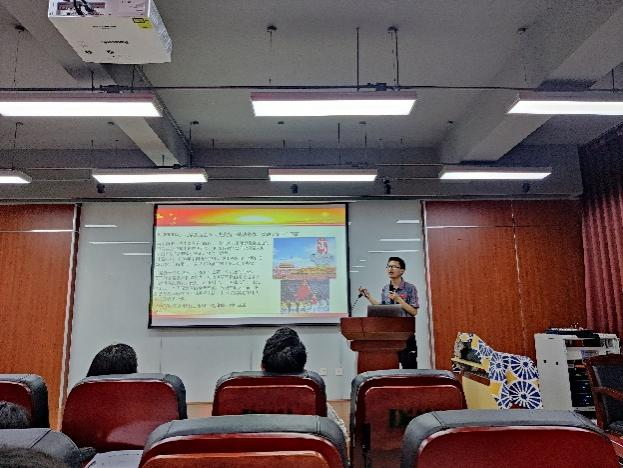 最后,2020级轻工技术与工程专业博士研究生王定康同学以“中国人的‘百年奥运’”为主题从我国奥运会发展历程的角度讲述了中国共产党人的奋斗史。王定康同学讲到,我国的奥运史可以归结为“中国人什么时候能派运动员去参加奥运会?中国运动员什么时候能得到一块奥运会奖牌?中国什么时候能举办奥运会?”——中国人的“奥运三问””。从1932年我国第一次派出了奥运会代表团,到1984年中国代表团获得第一枚奥运金牌,再到2008年北京奥运会的成功举办,王定康同学慷慨激昂的讲述了我国奥运史,更让在场的每一个人都深感中国共产党带领国家和人民从站起来到强起来的艰难与伟大!