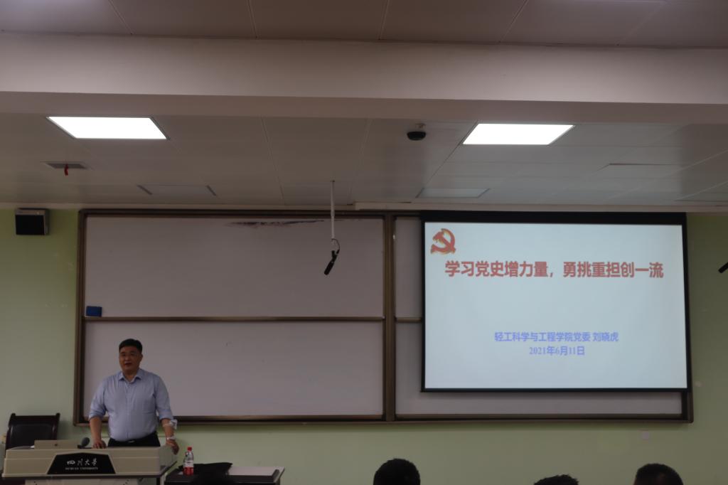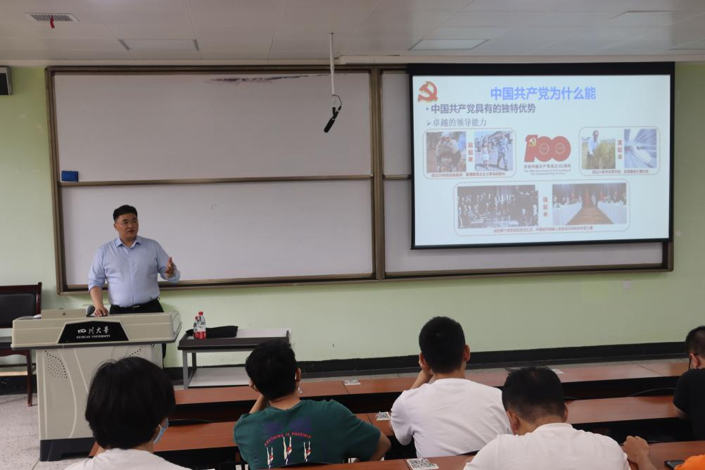 为深入推进党史学习教育走深走实,以更加高昂的状态迎接中国共产党建党100周年,2021年6月11日下午,公司党委刘晓虎书记在太阳成集团tyc33455cc江安校区第一教学楼B103教室为2020级本科生作党史学习教育专题辅导报告。本次辅导报告由2020级辅导员余昕玲老师主持。刘晓虎书记以“学习党史增力量,勇挑重担创一流”为主题,从“中国共产党为什么能”、“马克思主义为什么行”、“中国特色社会主义为什么好”、“学习党史应该获得的力量”四个部分进行重点讲授。
