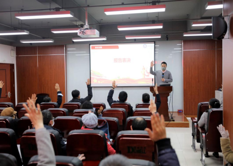 刘晓虎书记代表班子成员作了公司2021年度工作报告,刘书记表示公司将继续依靠党员干部带头作用的发挥和师生员工的合力拼搏,聚力推进实现“十四五”事业发展的辉煌新篇章。随后,大会听取和审议了全体领导班子成员按分管工作所作的工作报告。工作报告坚守立德树人根本任务、聚焦核心竞争力提升、对标一流推进公司的各项事业发展,全面总结了2021年公司在党建工作、团队队伍建设、团队建设、人才培养、科学研究、深化公司改革等方面取得的工作进展、突出成效以及不足之处。