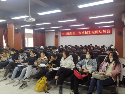 2021年12月31日上午9:30,轻化工程专业2019级卓越工程师动员大会在皮革楼215报告厅隆重举行。2019级全体本科生、生物质与皮革工程系教学系主任程海明教授、卓工班指导教师但年华副教授、刘文涛副教授、张金伟博士以及2019级辅导员出席了本次大会。