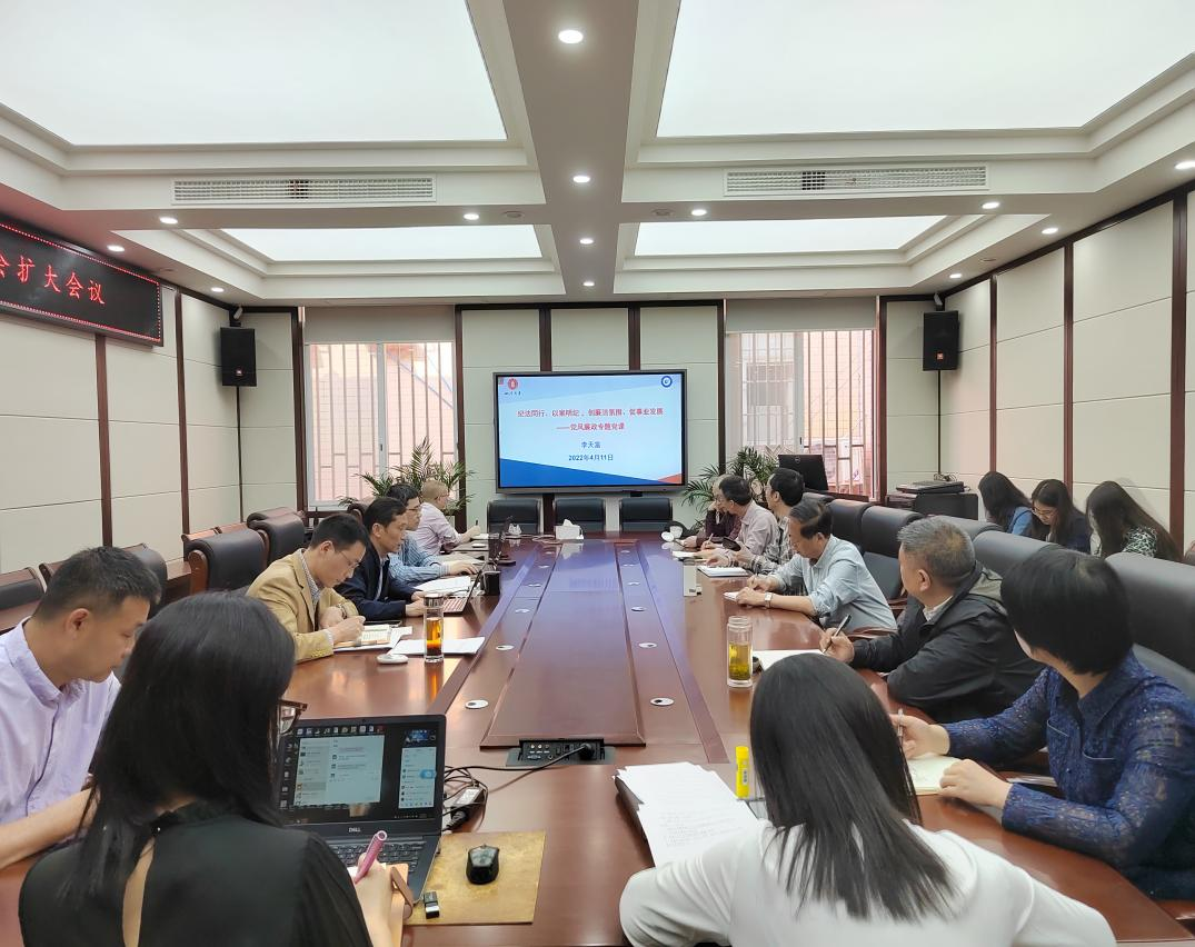 按照《2022年全面从严治党工作要点》及2022年党风廉政教育宣传月活动相关要求,公司于4月11日上午在纺工附楼205会议室召开2022年全面从严治党暨党风廉政教育宣传月工作布置会。公司全体班子成员、两委委员、系所负责人、教工党支部书记、科级干部、辅导员和党政办相关人员参加本次会议。会议由公司党委副书记兼纪委书记冯国涛老师主持。
