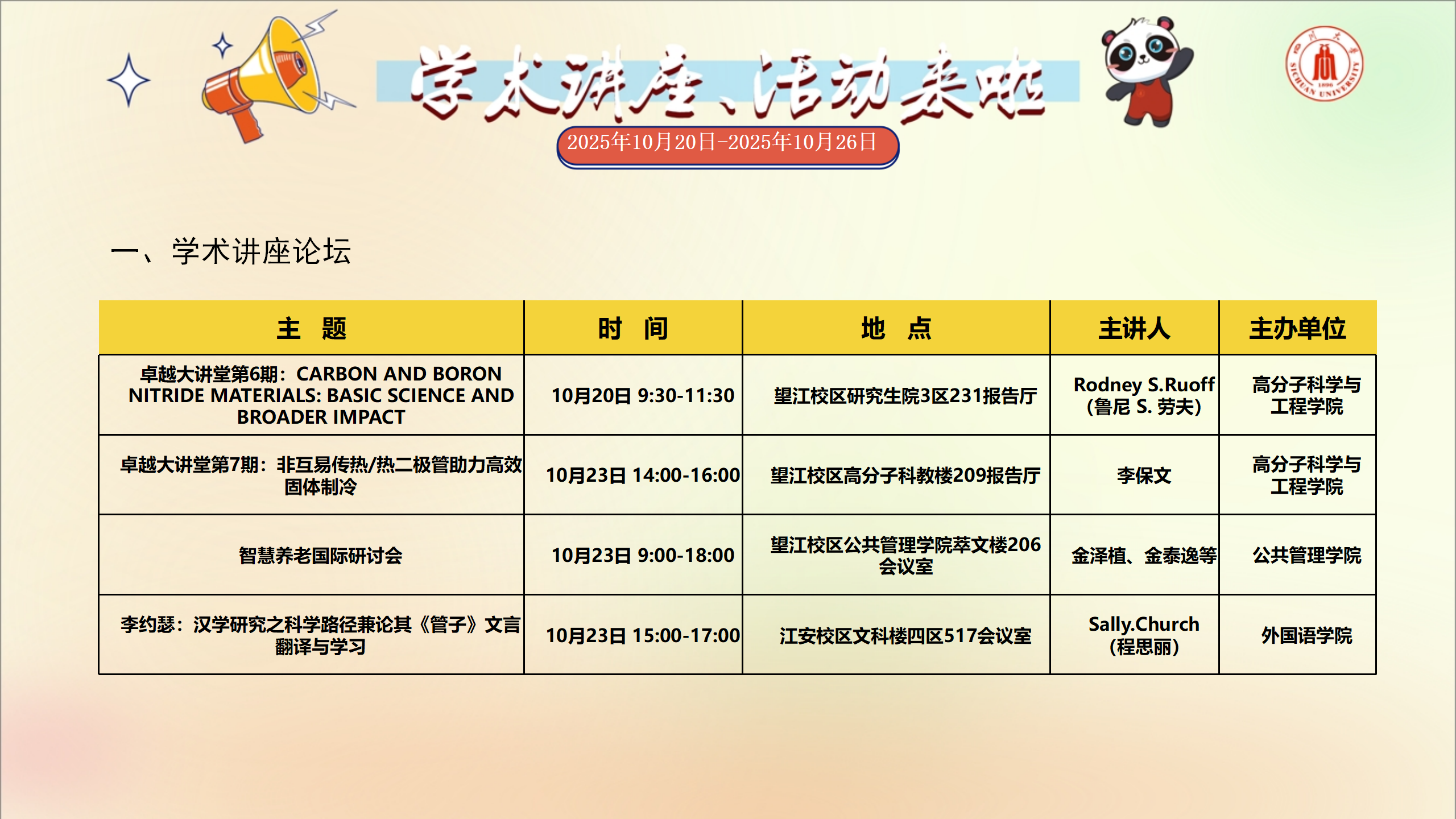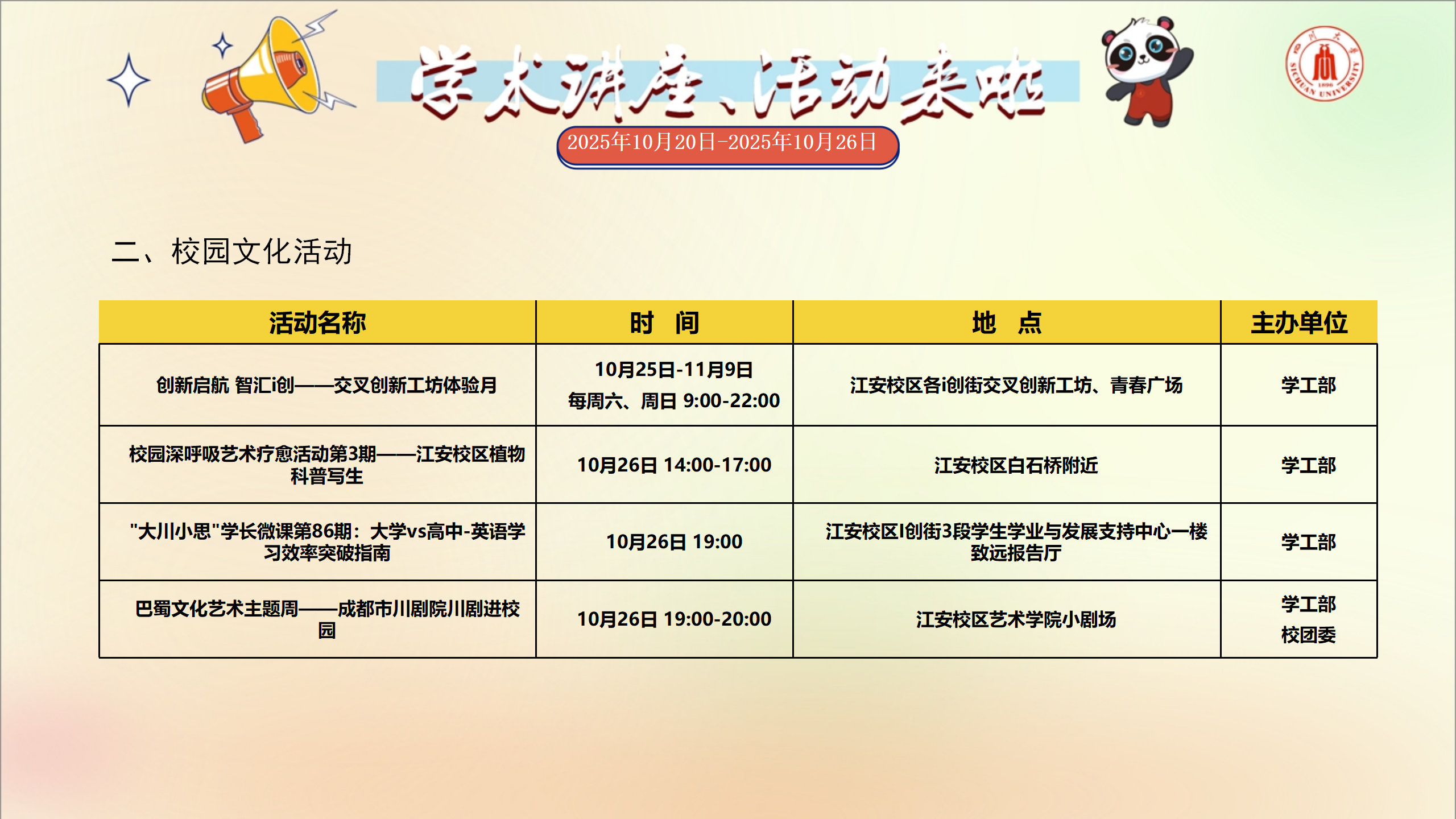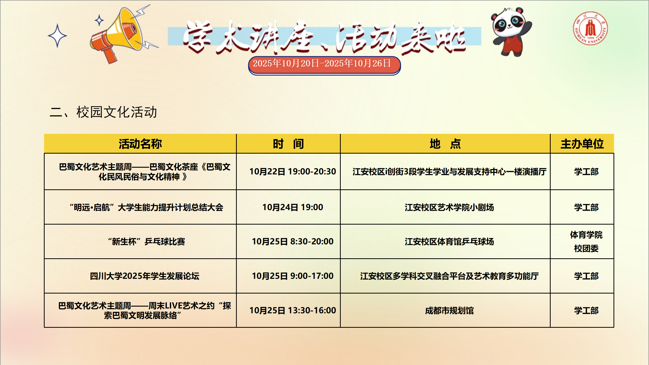 校园文化活动预告(2025年10月20日-2025年10月26日)