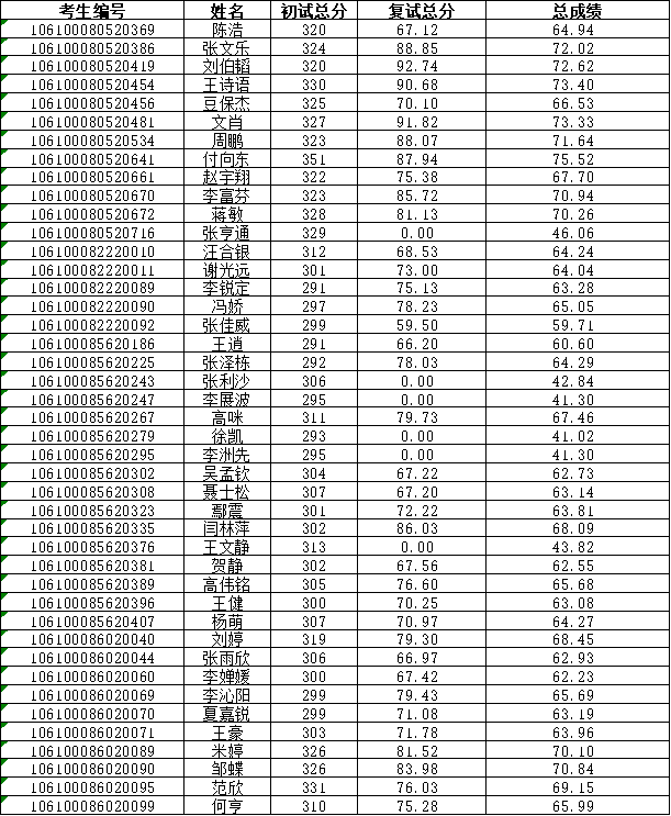 太阳成集团tyc33455cc/制革清洁技术国家工程实验室 2020年硕士研究生调剂复试成绩公示