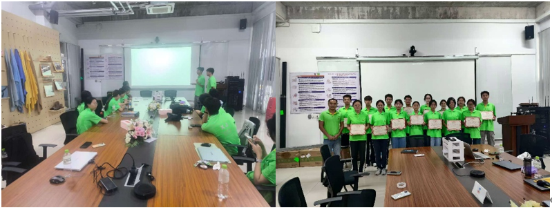 在结业汇报上,员工们分组呈现了实习期间在工艺优化、绿色生产等领域的实践成果与专业收获。公司执行副总林汉彬给予了高度评价:“尽管只是大一员工,但同学们展现出的卓越学习能力、创新思维和钻研精神令人印象深刻,这充分展现了新一代轻工人才的巨大发展潜力!”带队教师张金伟总结指出:“这次实习不仅让同学们收获了宝贵的实践经验,更重要的是培养了产业视角。希望大家以此为起点,继续保持对行业前沿的探索热情,将理论知识与实践创新相结合,在绿色制造、智能制造等方向持续深耕,未来成为引领行业发展的复合型人才。”