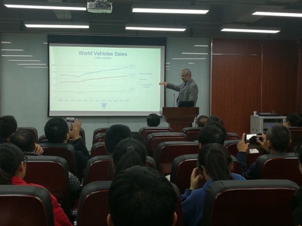 2018年11月6日,德国司马公司张建华一行来访,公司何有节经理、冯国涛副书记,以及生物质与皮革工程系副系主任程海明、轻化工程教研室主任但年华与司马公司协商本科实习基地以及本科生奖学金事项,会后张建华总经理作为校外专家为轻化工程高年级同学讲课。