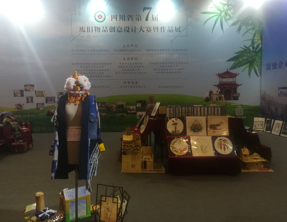 2018.11.10成都设计周在新会展中心举行,业部分师生出席,员工作品参加此设计周上举办的四川省废旧物品创意设计大赛获得十佳作品称号。
