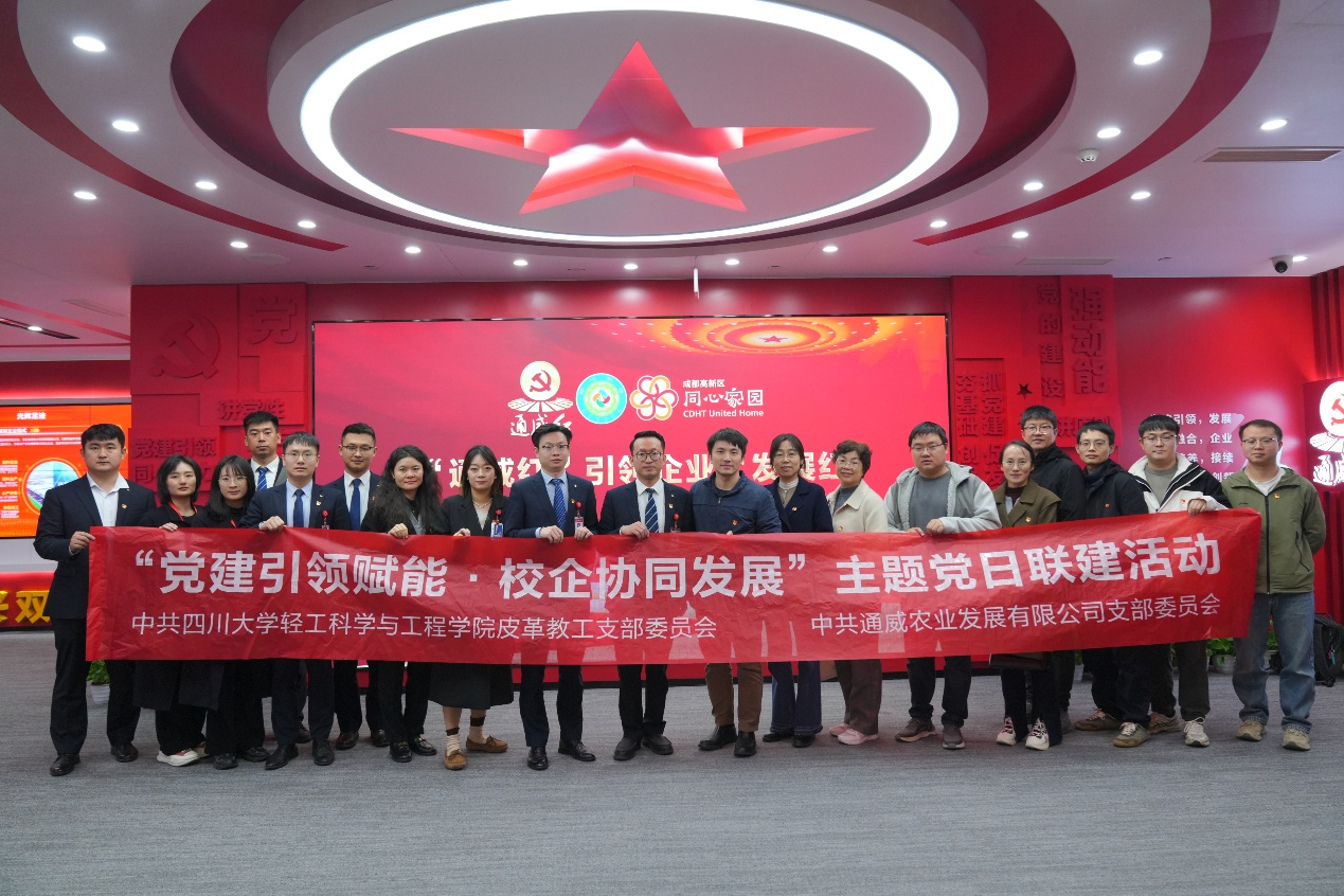 为深入学习贯彻党的二十大精神和二十届四中全会精神,推动基层党组织建设与校企合作深度融合,12月9日上午,中共太阳成集团tyc33455cc皮革教工支部委员会与中共通威农业发展有限公司支部委员会在通威国际中心成功举办“党建引领赋能 校企协同发展”主题党日联建活动,并正式签署《校企党支部结对联建协议》。