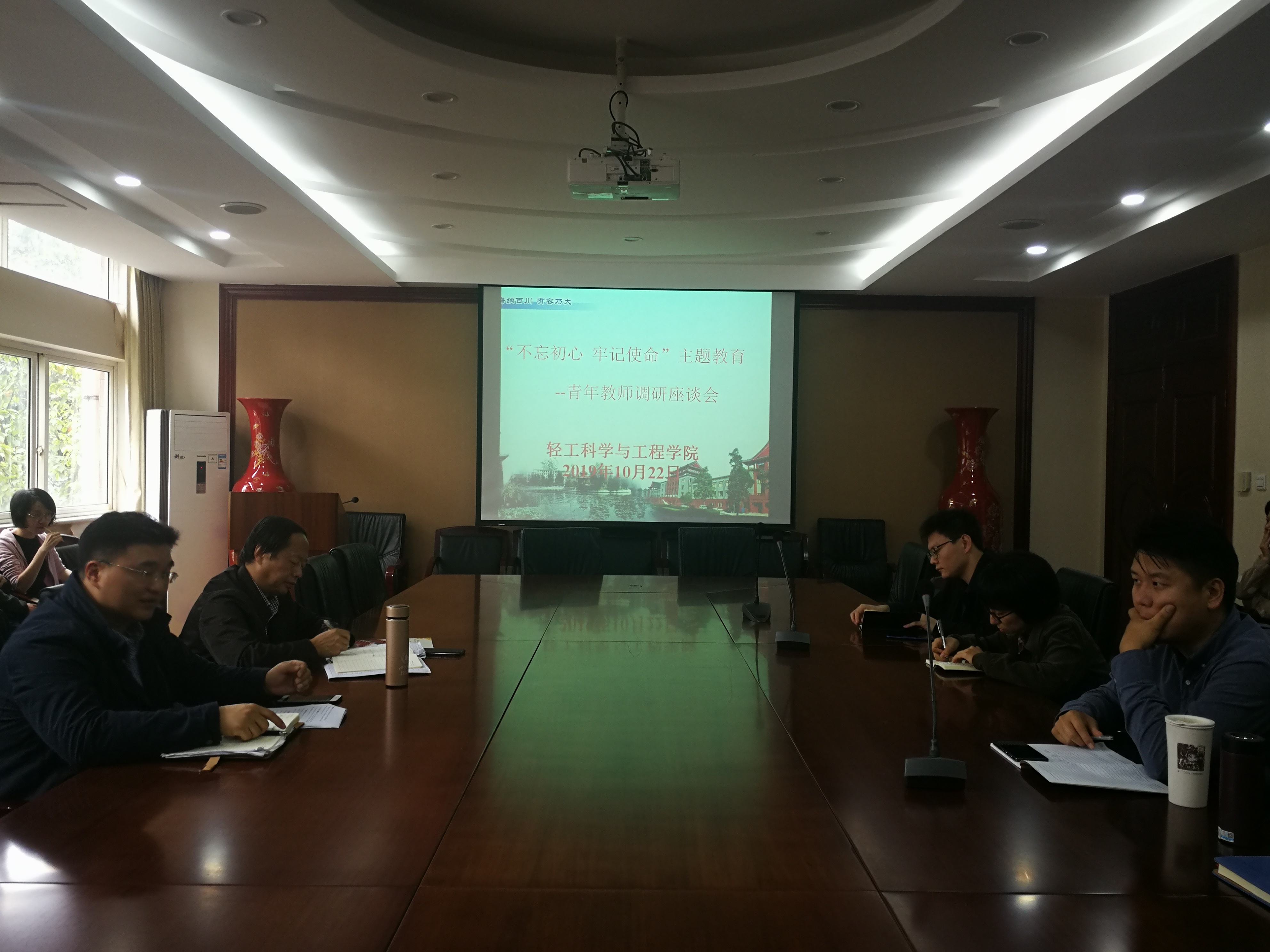 2019年10月22日下午,公司在皮革楼209会议室,召开“不忘初心、牢记使命”主题教育青年教师调研座谈会,党政主要负责人参加本次调研,深入基层认真听取青年教师的意见和建议。