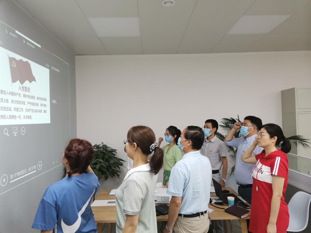 最后,与会人员在党旗下庄严宣誓,集体重温入党誓词。