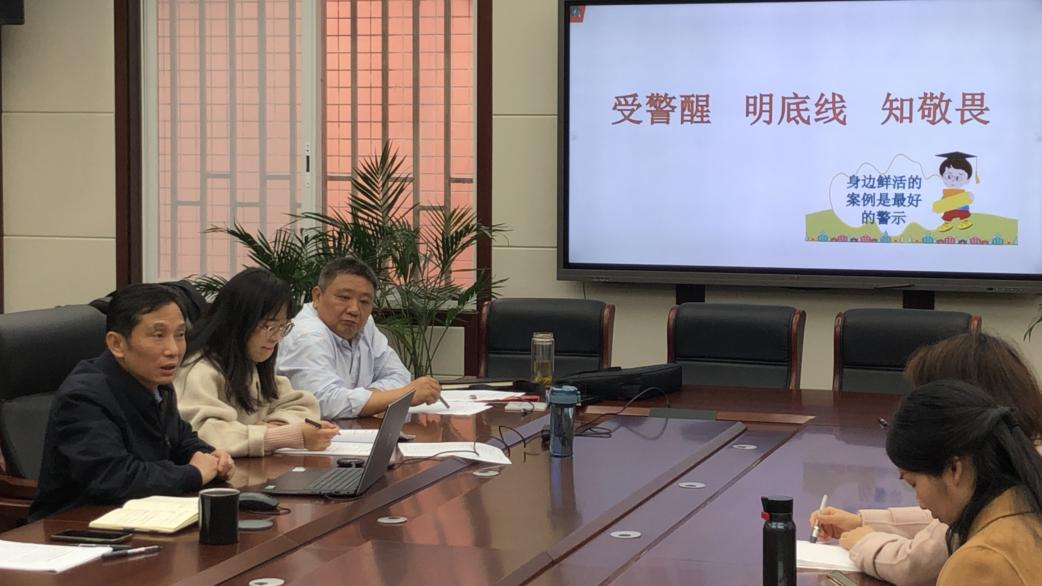 同时,支部书记田彬通报了教育部公开曝光第九批7起违反教师职业行为十项准则典型案例,并强调师德师风建设的重要性。随后支部全体党员观看了《家风不正,必有灾殃》、《被“围猎”的市委书记》等两部廉政教育警示片。