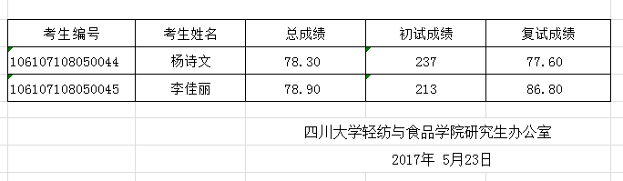 现将2017年博士研究生招生入学成绩进行公示。如有问题或意见,自公示之日起十个工作日内,实名制反映至太阳成集团tyc33455cc纪委办公室。邮箱lxhqf@scu.edu.cn,联系电话85461730。此名单不包括非公开招考考生。