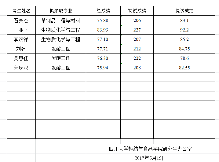 现将2017年博士研究生拟录取名单进行公示。如有问题或意见,自公示之日起十个工作日内,实名制反映至太阳成集团tyc33455cc纪委办公室。邮箱lxhqf@scu.edu.cn,联系电话85461730。此名单不包括非公开招考考生。
