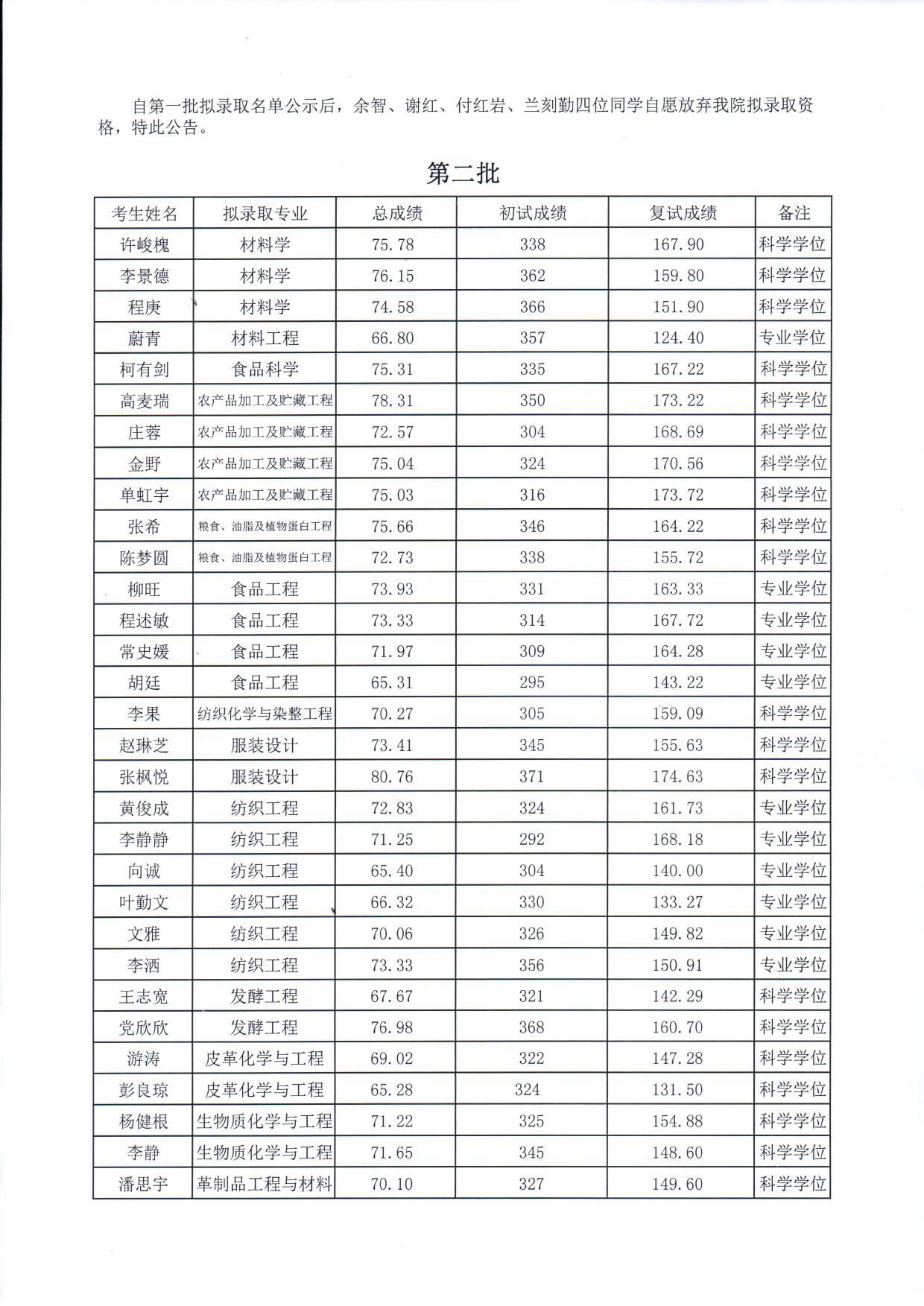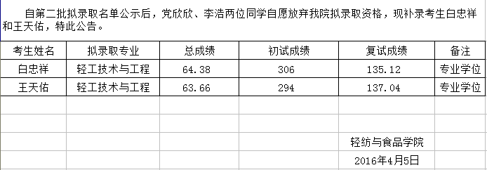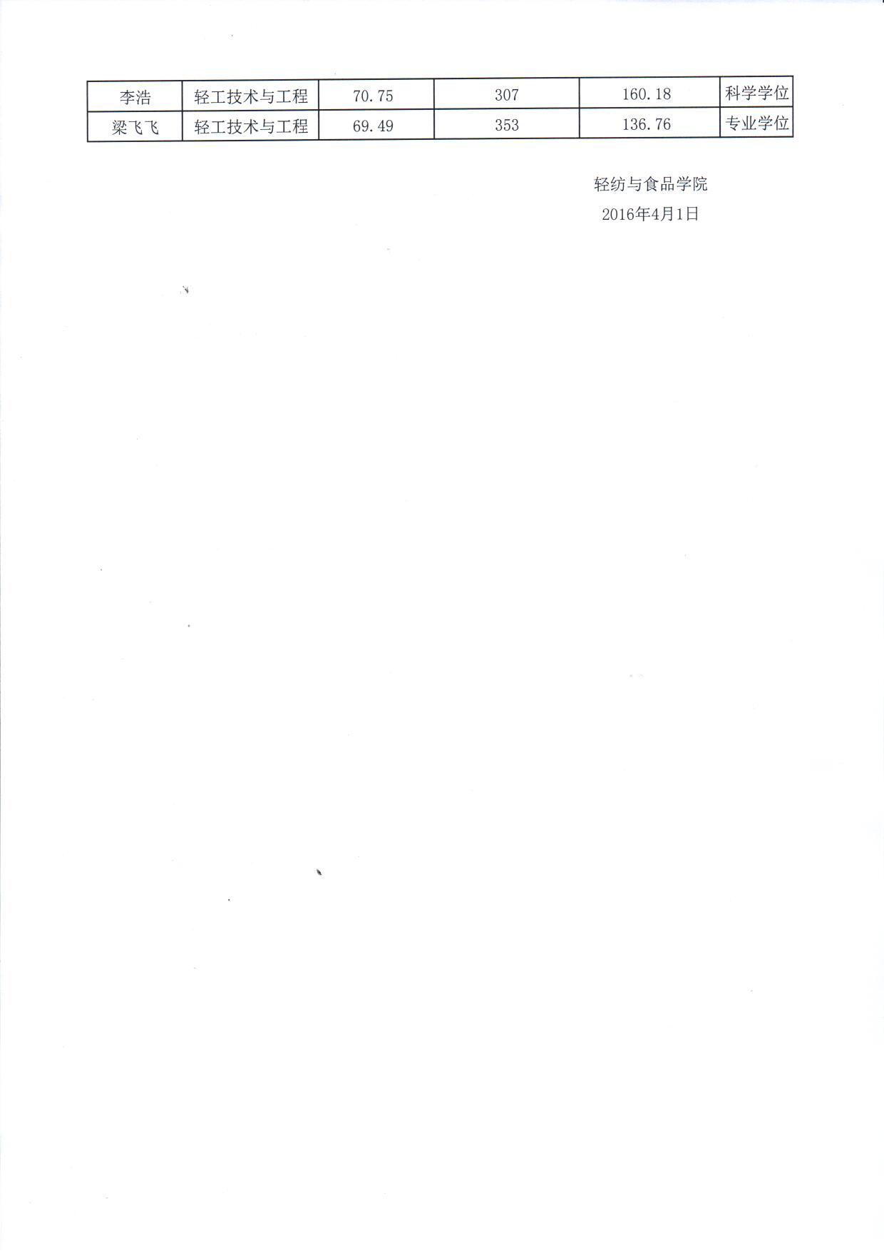 轻纺与公司2016年硕士研究生招生拟录取名单公示