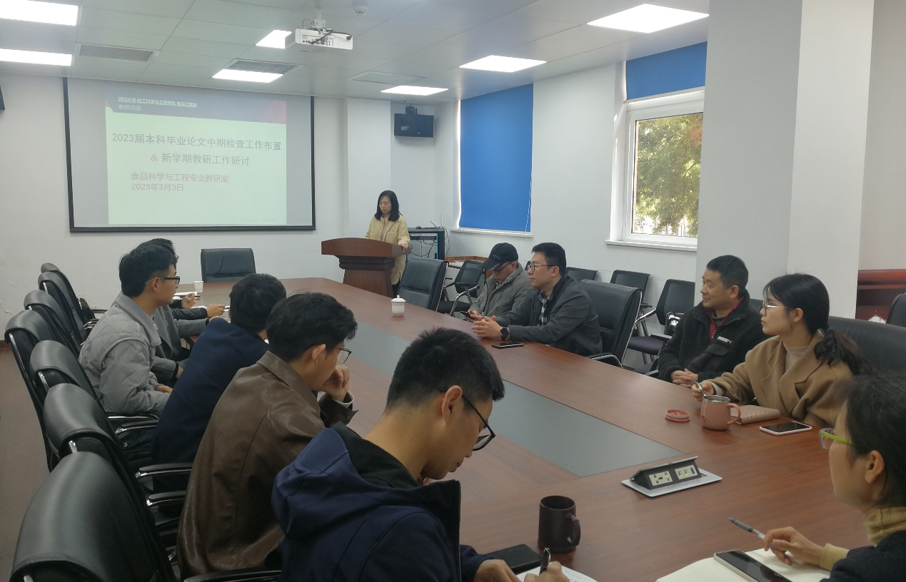 为提高本科毕业设计(论文)质量,食品科学与工程专业教研室于2023年3月3日,在纺工楼204开展了毕业论文中期检查工作暨新学期教学研究工作研讨会,由教研室主任段飞霞副教授主持开展,教研室全体教师参会。