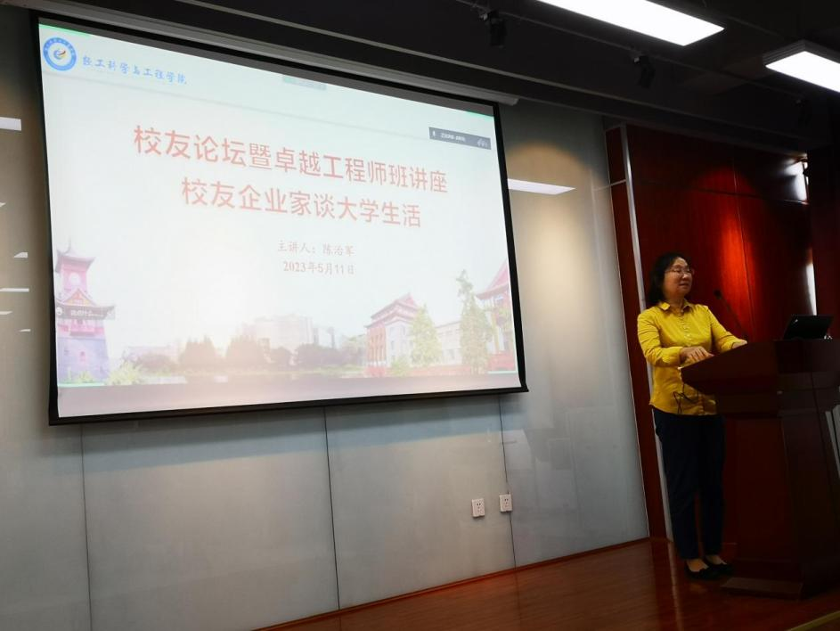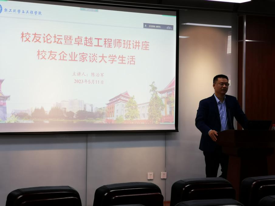 2023年5月11日下午15:00,轻化工程专业2019级卓越工程师班创新创业系列讲座在皮革楼215报告厅拉开帷幕。鸿丰高分子材料有限公司总经理陈志军为同学们做了《员工企业家谈校园生活》讲座。 2019级卓越工程师班本科生、公司党支部副书记冯国涛副教授、2020级辅导员余昕玲老师、任课教师何有节教授以及戴红副教授出席了本次讲座开讲仪式。