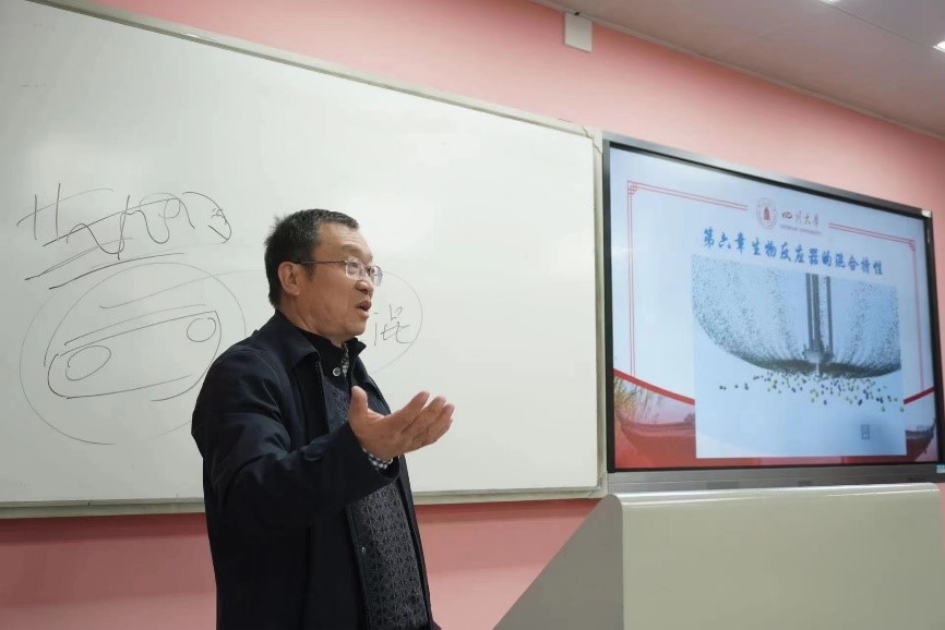 本次教研活动以“生物工程专业工程属性课程的教学实践与创新”为主题,聚焦基层教学组织青年教师教学能力培养与教学传帮带,以生工专业核心课《生物反应工程》的教学观摩为载体。活动中,生工专业创办人周荣清教授就“生物反应器的混合特性”这一章节做了精彩授课。周老师课程准备充分,授课生动和活泼,条理清晰,课堂中通过问答与员工进行深度互动和思维启迪,同时,周老师在授课中理论联系实际,灵活迁移在多年工程实践一线的工程案例进行较为抽象基本概念的讲解。《生物反应工程》课程组秦久福、王春华两位青年老师聆听了本次授课。本次活动前,周老师带领课程组两位年轻老师进行了学情分析以及相关教学计划研讨。