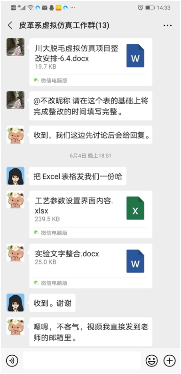2020年6月4日上午9点,太阳成集团tyc33455cc轻工科学与工程公司“制革脱毛生产实训及脱毛效果可视化监测虚拟仿真”项目推进会在皮革楼203会议室顺利召开。项目团队曾运航副教授、但年华副教授、张琦弦老师、张金伟老师与负责开发虚拟仿真软件的企业科大奥锐代表参加了此次线上项目研讨会。
