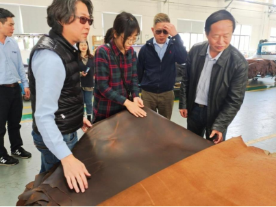 图4 参观泰庆皮革生产线