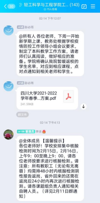 公司通过QQ群提醒教师做好上课准备、核酸检测等工作