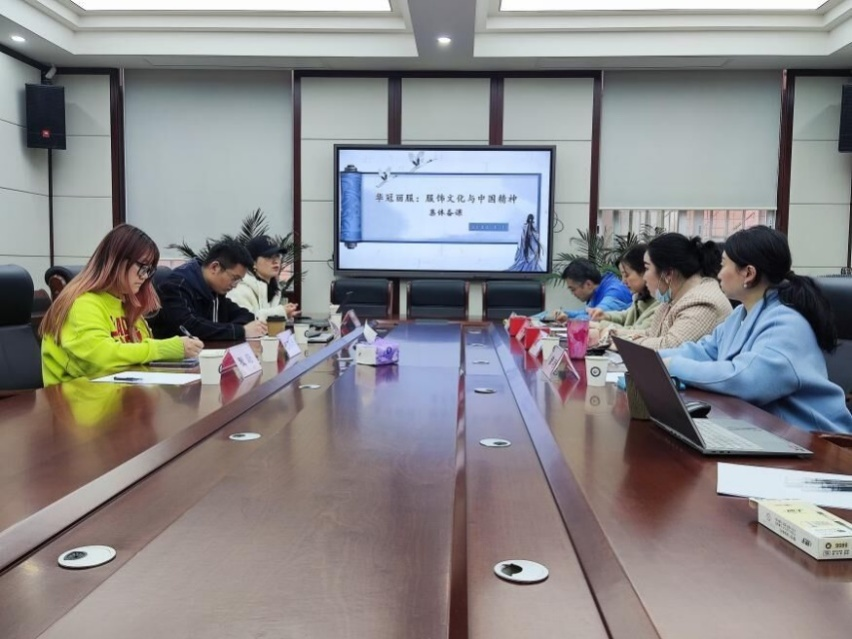 本次备课研讨活动主要包括三个阶段。首先,课程负责人杨璐铭老师针对本学期选课情况进行了学情分析,再次明确,本着“厚通识、宽视野、多交叉”的通识教育理念,课程组要带领同学们探寻国风盛行下服饰的审美本源,感受华夏服饰美学中蕴含的中华人文情怀。